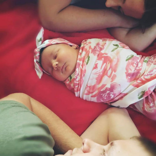BQUBO 3 Sets Receiving Blanket with Headbands Newborn Baby Floral Printed Baby Shower Swaddle Gift