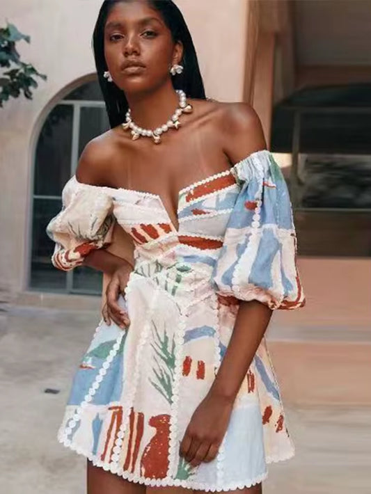 Floral Allure: Elegant Women’s Flower Print Deep V-Neck Dress